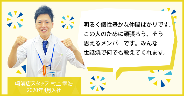 自分が成長できるなら県外でも良いと思って、就職先を探していて、大手、中小の薬局を10社ほど廻りました。その中で瑠璃光薬局だけが自分をひとりの人として見てもらえた企業に感じました。それが決めです。あと社長が気さくで面白く、お金の臭いがあまりしなかったことも大きかったです笑。